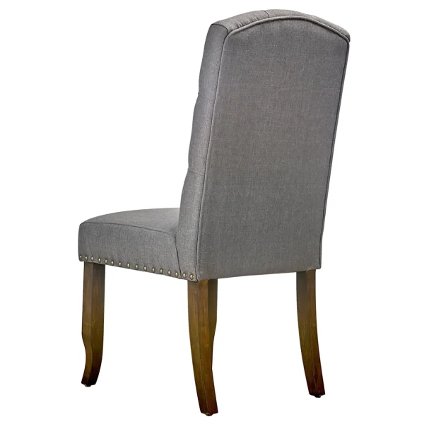 When The Table Is Set With Elegance, Our Amina Dining Chair Is A Must. All Decked Out In Textured Charcoal Grey Upholstery Complete With Button Tufting And Nailhead Accents, It Sits Atop Distinctive Slender Wooden Legs. Amina’S Slightly Arched Silhouette And Armless Design Make It An Exquisite Choice For Formal Dining.